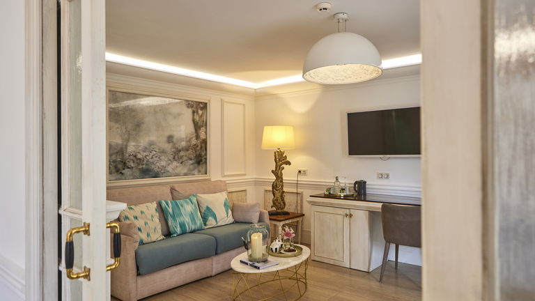 Espaciosas suites con salón de estar y doble baño con ducha Perfectas para el verano, con salón de estar o balcón, y para los inviernos fríos, equipadas con suelo radiante que garantiza una comodidad agradable para tus pies. Un refugio ideal para cualquier época del año.