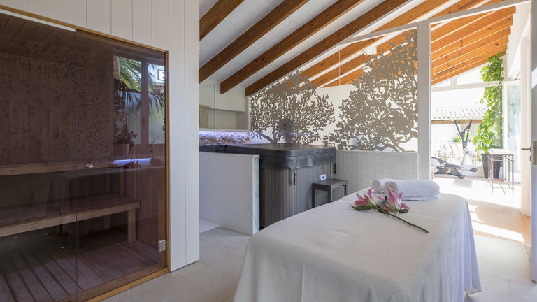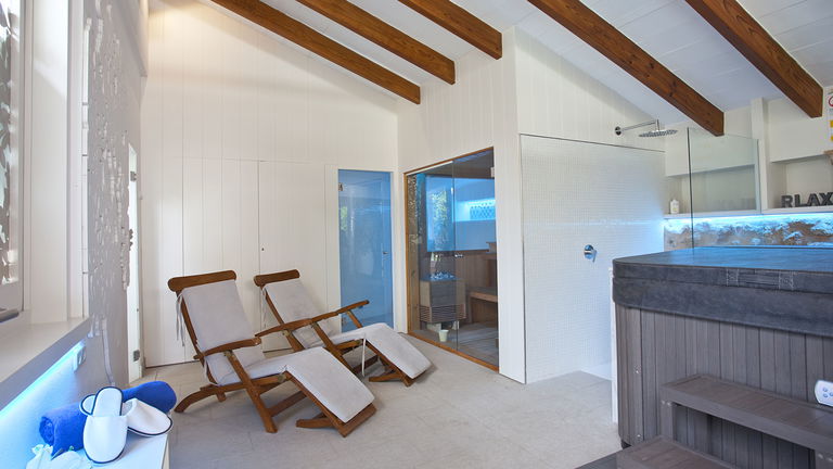 Regálate un momento de auténtico bienestar con acceso privado a la zona wellness, que incluye jacuzzi, baño turco y sauna.